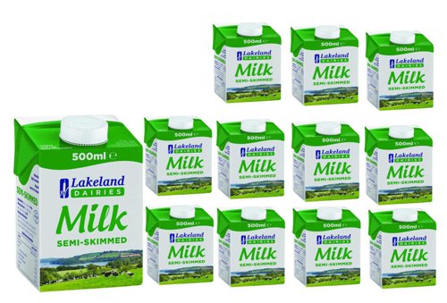 Lakeland UHT Semi Skimmed Milk 500ml (Pack 12) - 0499134