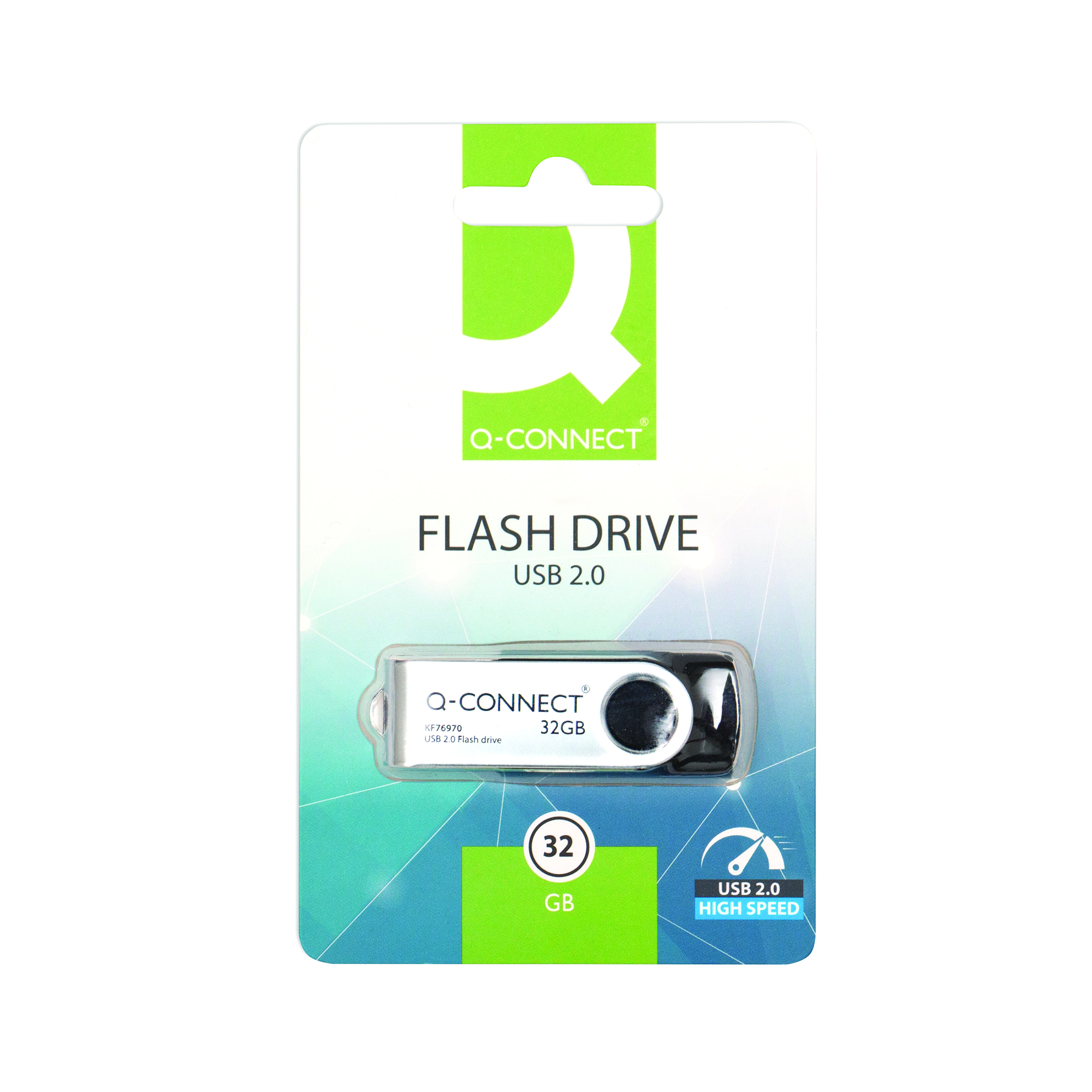 The compact and stylish Q-Connect USB 2.0 Swivel Flash Drive is an economical choice for file transfer and backup. It features a convenient 360 degree swivel casing to protect the USB connector from damage - no cap to lose. There's also a lanyard hole for easy portability. Suitable for Windows and Mac computers, this drive contains 32GB of storage for documents, video, photos and more.