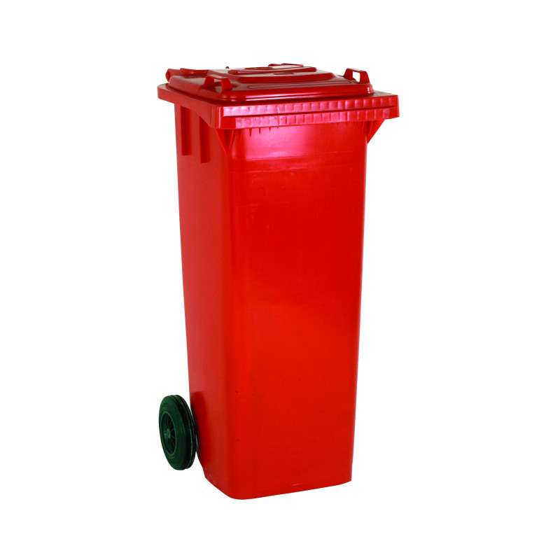 This tough and durable refuse container is made from UV stabilised polyethylene, which is weather-resistant and designed for long life. The lid and high quality plastic construction help keep odour contained and the 2 wheels provide easy manoeuvrability. This red refuse container has a capacity of 140 litres.