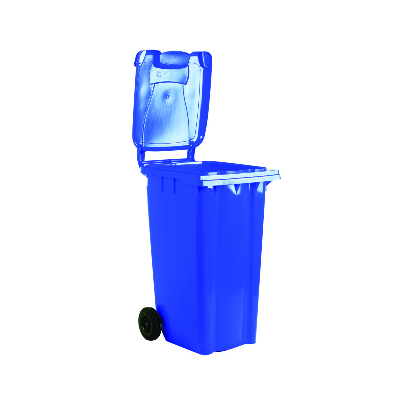This tough and durable refuse container is made from UV stabilised polyethylene, which is weather-resistant and designed for long life. The lid and high quality plastic construction help keep odour contained and the 2 wheels provide easy manoeuvrability. This blue refuse container has a capacity of 80 litres.